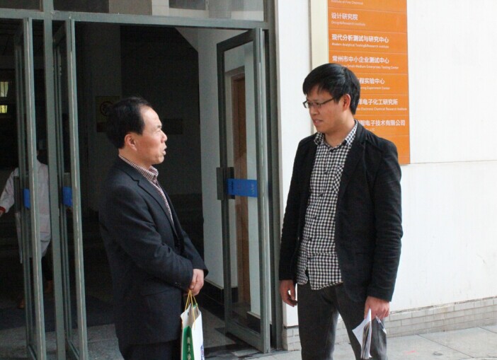 吳董事長到常州大學(xué)與“千人計(jì)劃”專家姜興茂教授及碩士研究生魏國輝老師進(jìn)行技術(shù)研討交流