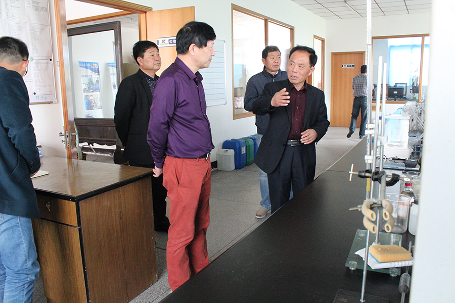 科星化工董事長吳龍鐵在化驗室向來賓講解產品檢測過程、介紹產品研發工藝。