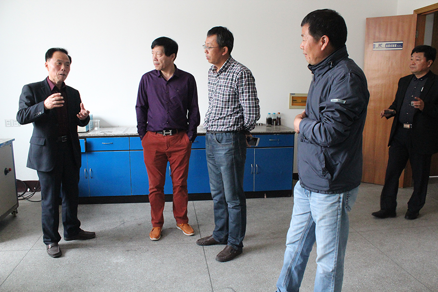 來賓在鹽霧試驗室跟董事長吳龍鐵探討產品的性能,并對我司產品在實際生產中所展現出的高效、節約、環保等優越性能給予了高度的評價