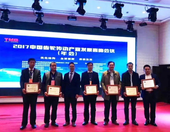 2017年11月22日,“2017中國齒輪傳動產業發展高峰會議”在杭州舉行,我公司被中歐齒輪協會授予“2017年齒輪產業科技進步成果一等獎”,董事長吳龍鐵被授予“中國齒輪傳動產業特別貢獻獎”。