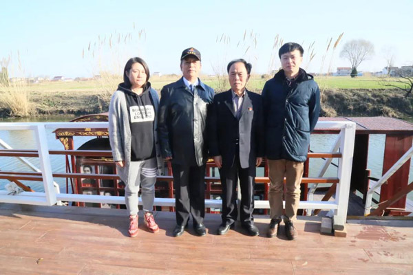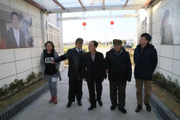 南通科星化工股份有限公司董事長吳龍鐵(中)和執(zhí)行總裁吳曉強(右一)、海安玖玖玖貿(mào)易有限公司總經(jīng)理丁穩(wěn)玲(左一)以及張云泉同志(左二)一起慰問參加過抗美的老兵顏夕林(右二)