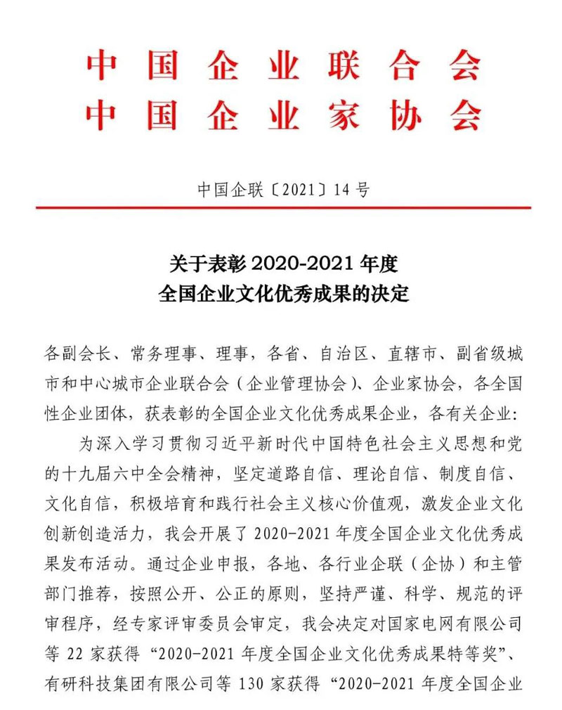 近日,中國企業聯合會/中國企業家協會發布了《關于表彰2020-2021年度全國企業文化優秀成果的決定》(中國企聯【2021】14號),南通科星化工股份有限公司憑借著33年對企業文化的培植與堅守,榮獲“2020-2021年度全國企業文化優秀成果一等獎”。此獎為國務院批準設立的企業界文化最高榮譽獎,南通市僅此一家上榜企業,更是中國金屬加工液行業唯一獲此殊榮的單位。