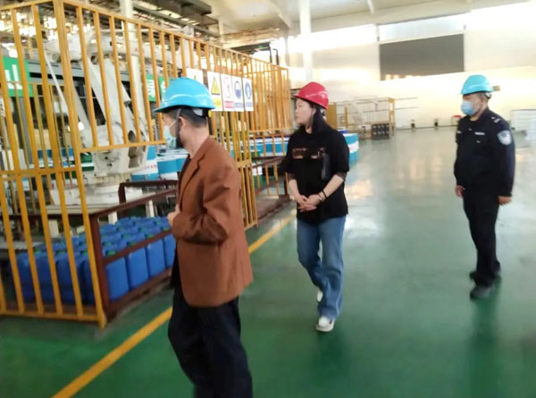 領導、專家深入生產一線,通過實地查看,聽取相關工作匯報,詳細了解生產現場、危險化學品的儲存情況等。