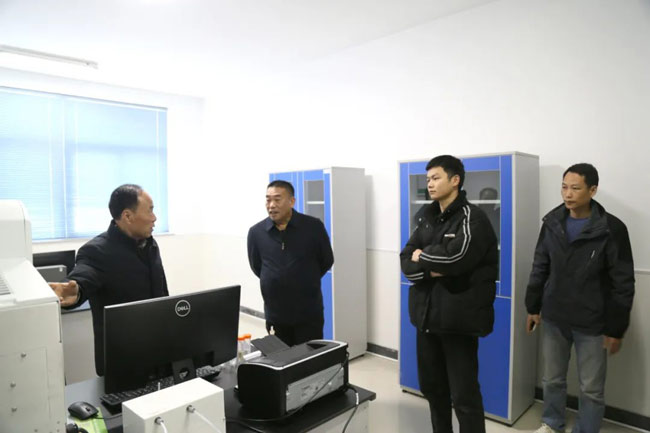 座談會后,董事長吳龍鐵帶領考察組參觀了研發中心,介紹了實驗室六大事業部和儀器設備的相關情況,并對考察組提出的切削液方面的問題進行了細致的解答。